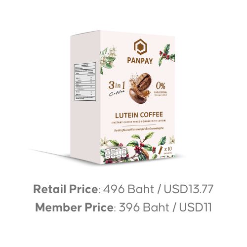 Coffee mixed powder with luteinปันเปย์ ลูทีน คอฟฟี่ (กาแฟปรุงสำเร็จชนิดผงผสมลูทีน)10ซอง x 15 กรัม